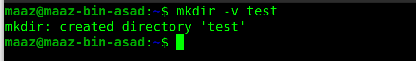 In the above example, we have created a directory named “test” and we got the message of successful directory creation.