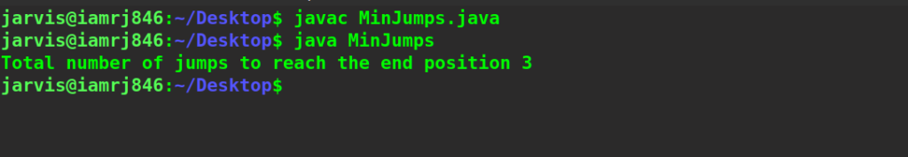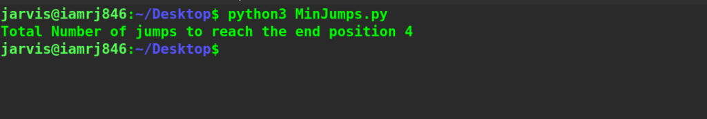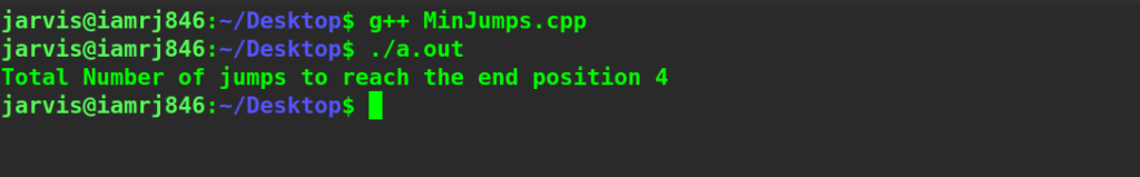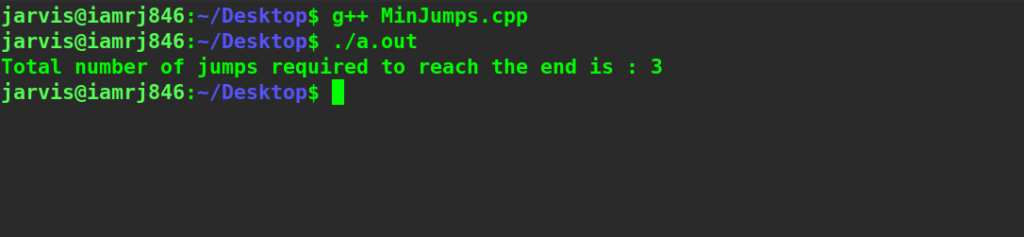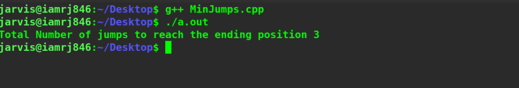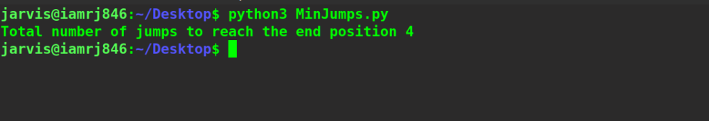 - Finally, return the jumps[n-1] that is the total minimum jump.