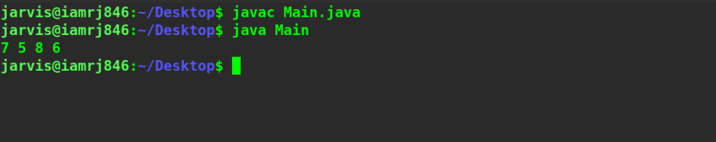 import java.util.*; import java.util.Map.Entry; // Class to create a node // having an integer value, data // and two pointers // to store the references of the // left and right children class Node { int data; // variable to store horizontal // distance of a node int hd; Node left, right; public Node(int key) { data = key; hd = Integer.MAX_VALUE; left = right = null; } } class Tree { Node root; // Default constructor public Tree() {} // Parameterized constructor public Tree(Node node) { root = node; } // method that takes the node // of a tree as its parameter // and print the tree's bottom view. public void BottomMostView() { if (root == null) return; // variable to store horizontal // distance of a node. // initially set it to 0 int hd = 0; // a map to store the // pair of key and value Map<Integer, Integer> map = new TreeMap<>(); // queue for storing the nodes of the tree, while // traversing the tree in level order. Queue queue = new LinkedList(); // set the horizontal distance of the root node // which is intialized to 0. root.hd = hd; // add the root to the queue. queue.add(root); // traverse in a level order fashion // until queue becomes empty while (!queue.isEmpty()) { Node temp = queue.remove(); // get the horizontal distance // of the node that is popped out // from the queue. hd = temp.hd; // the popped out node will be // placed in the map with // a key as its horizontal distance. map.put(hd, temp.data); // add the left child of the popped out node, // into the queue, // with hd = hd - 1 if (temp.left != null) { temp.left.hd = hd-1; queue.add(temp.left); } // add the left child of the popped out node, // into the queue, // with hd = hd + 1 if (temp.right != null) { temp.right.hd = hd+1; queue.add(temp.right); } } // map's values are extracted to a set // so that the iterator can iterate over it Set<Entry<Integer, Integer>> set = map.entrySet(); // Iterator to traverse over the set Iterator<Entry<Integer, Integer>> iterator = set.iterator(); // Traversing elements of the map with the iterator. while (iterator.hasNext()) { Map.Entry<Integer, Integer> me = iterator.next(); System.out.print(me.getValue()+" "); } } } // Main driver class public class BottomMostView { public static void main(String[] args) { Node root = new Node(1); root.left = new Node(2); root.right = new Node(3); root.right.left = new Node(5); root.right.right = new Node(6); root.right.left.left = new Node(7); root.right.left.right = new Node(8); Tree tree = new Tree(root); tree.BottomMostView(); } }
