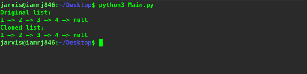 In this article, we have learned how to clone a singly linked list. We discussed three different approaches that allow us to clone a singly linked list. Each approach is explained with the help of code examples in the three popular programming languages, namely C++, Java, and Python. Also, the output of each code example is highlighted to help you understand each approach better.