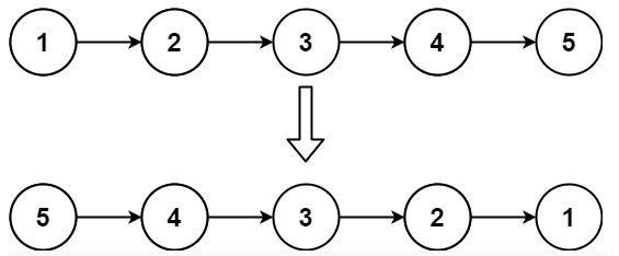 Input: 1->2->3->4->5->null Output: 5->4->3->2->1->null Input: null Output null Input: 2->null Output 2->null